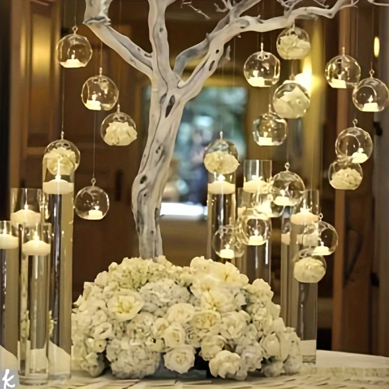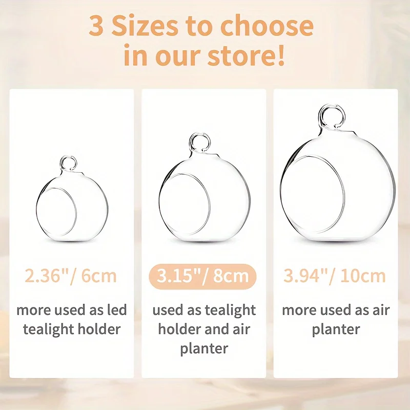 100pcs 3.15inch /8cm hanging glass tea light holder globe, plant patio glass balls, air plant tea lamp candle holder, home decor outdoor garden