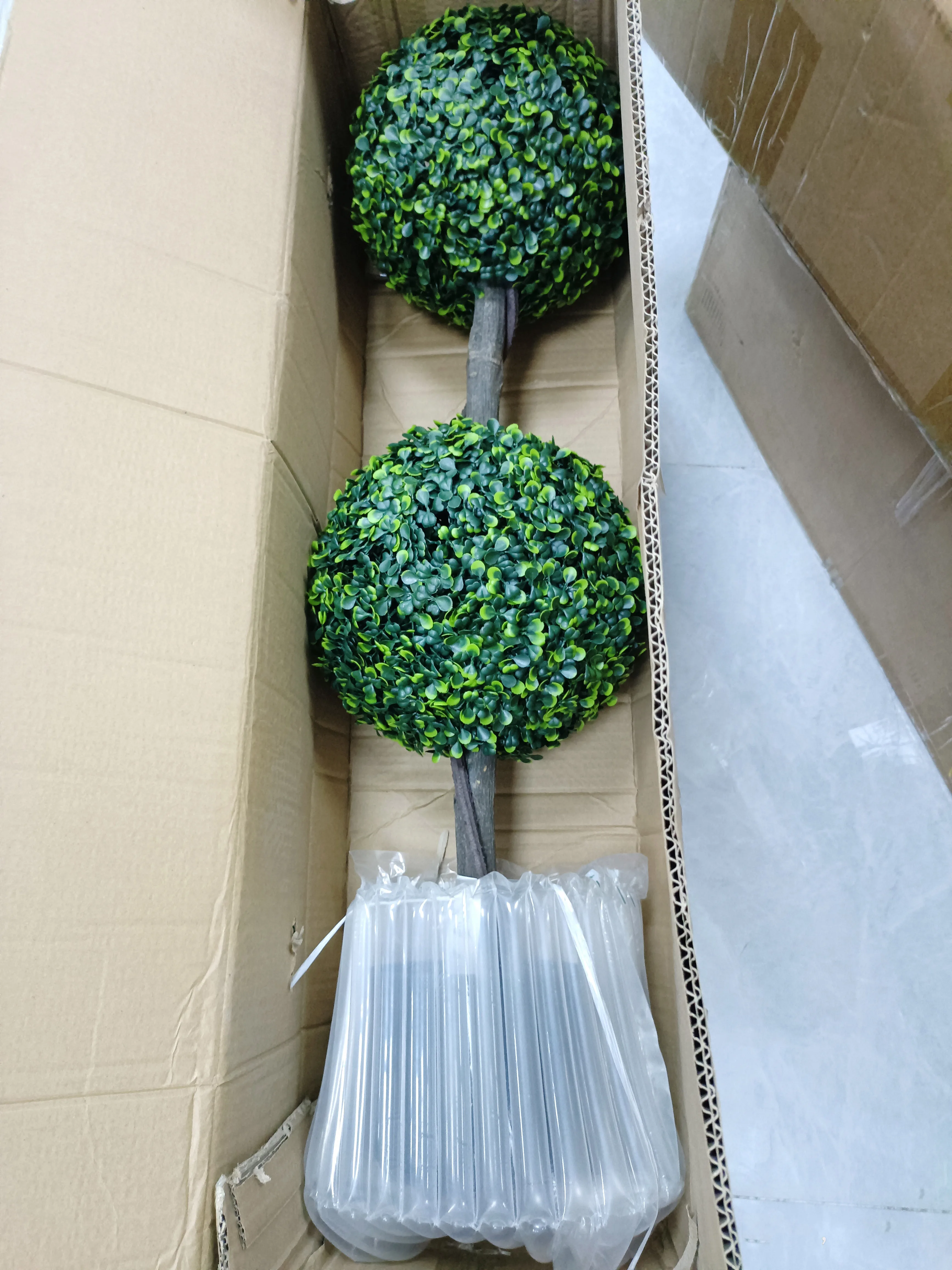 REALISTIC AND LIFELIKE STYLES: The faux trees are made from high-quality materials and are designed to look exactly like real trees. Each tree features two perfectly shaped balls made from lifelike artificial boxwood leaves and comes with a sturdy trunk and pot to hold them in place.