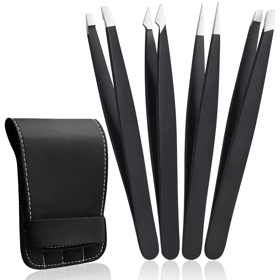 This set includes four colorful stainless steel eyebrow tweezers designed for precise removal of fine hairs. Each slanted tip offers expert control for shaping and grooming eyebrows with accuracy. The durable construction ensures long-lasting performance, while the included box provides convenient storage and portability. Ideal for professional makeup artists and personal grooming alike.