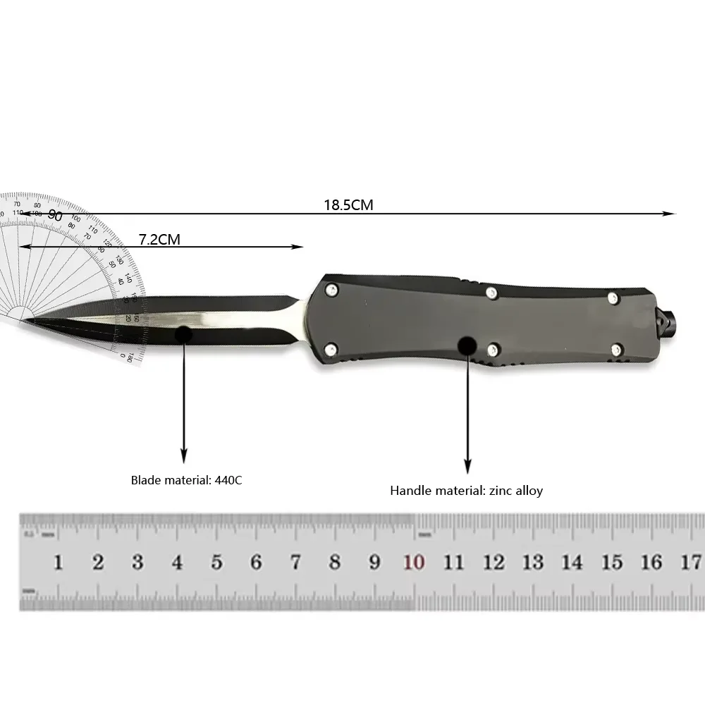 The A07 Push Button Knife features a high-quality 440C stainless steel blade known for its sharpness and corrosion resistance. Its zinc alloy handle ensures durability and a comfortable grip, making it ideal for camping, survival, and everyday multitool use. Designed for reliability and ease of deployment, this knife is a practical and sturdy gift choice for men who value functional outdoor gear.