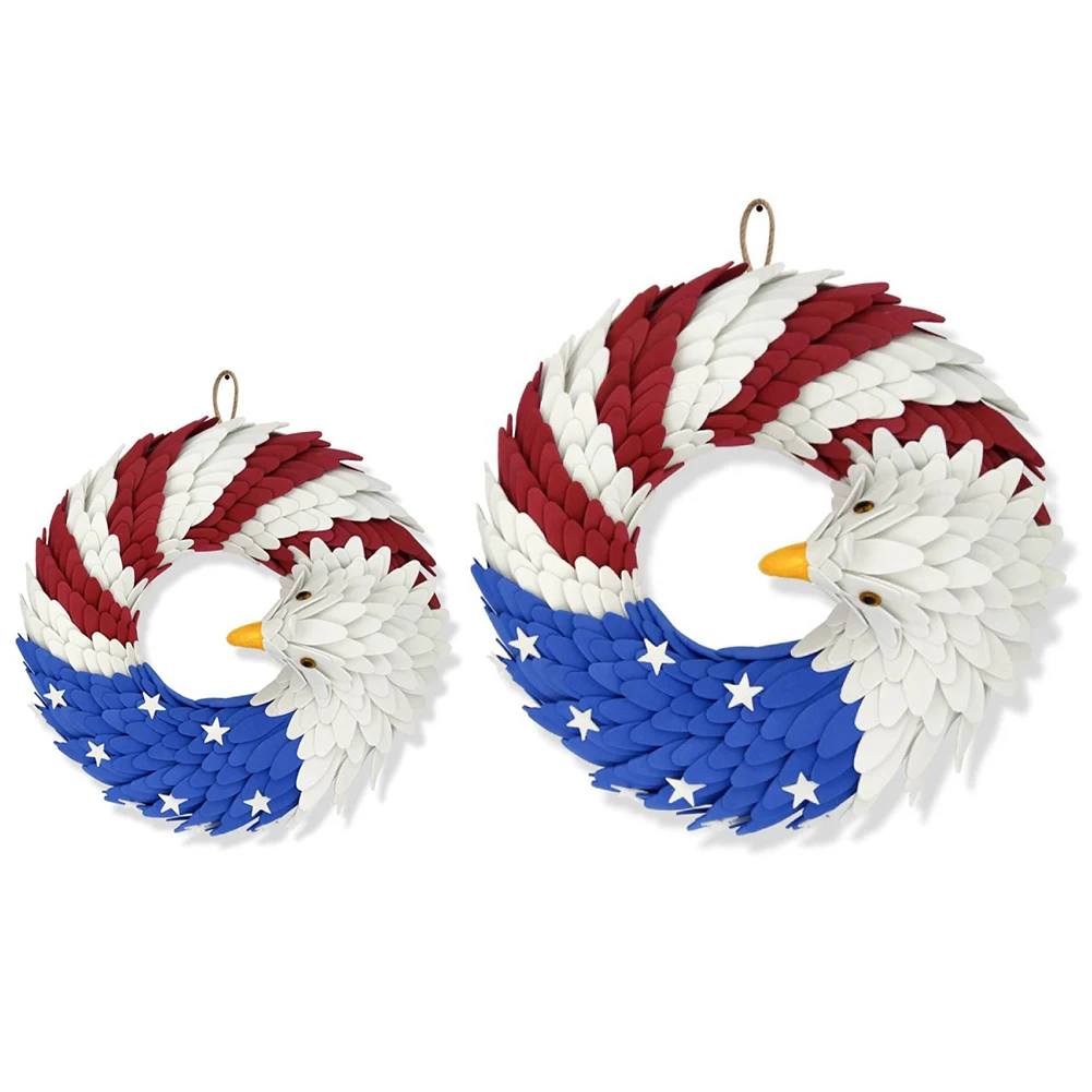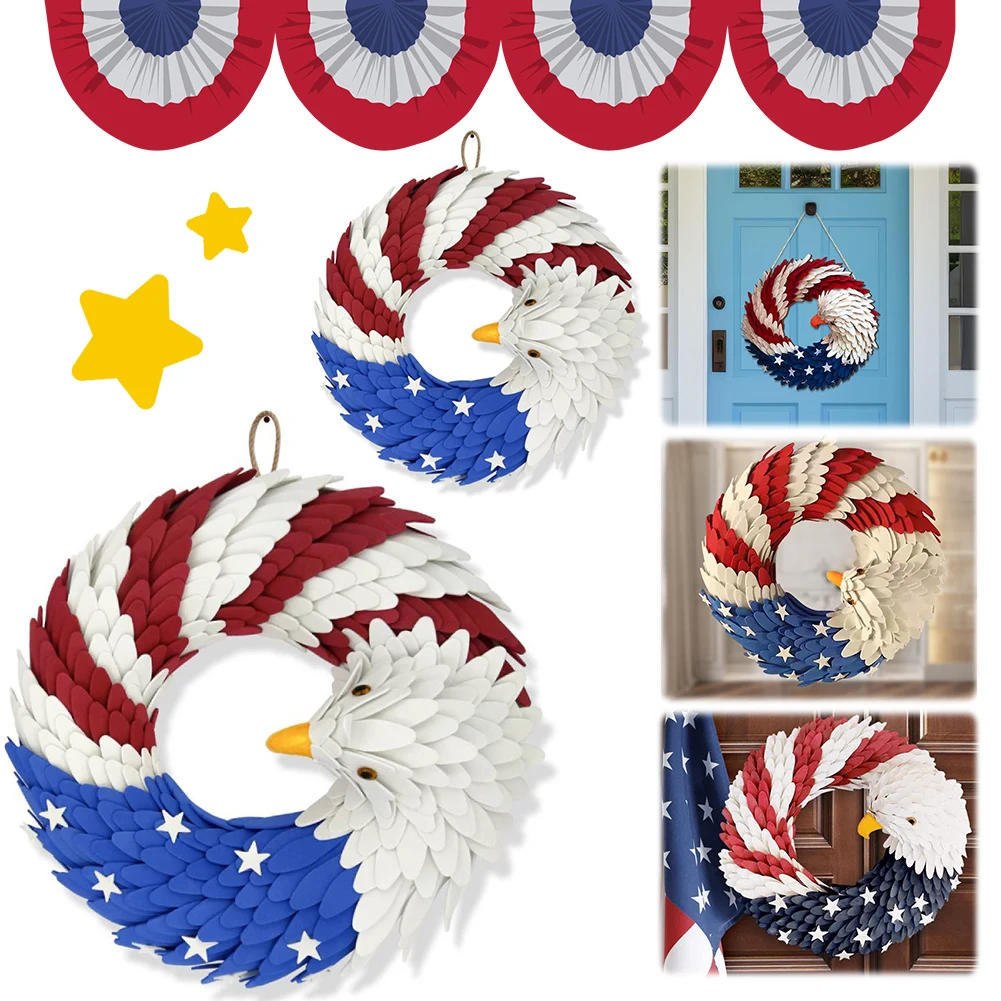 1.Patriotic American Wreath: Remember to celebrate the 4th of July with this essential indoor and outdoor American flag eagle wreath decoration. Perfectly matching for memorial day wreath, these decorations give a summer independence day wreath feel and are versatile for parties, weddings, or gifts.