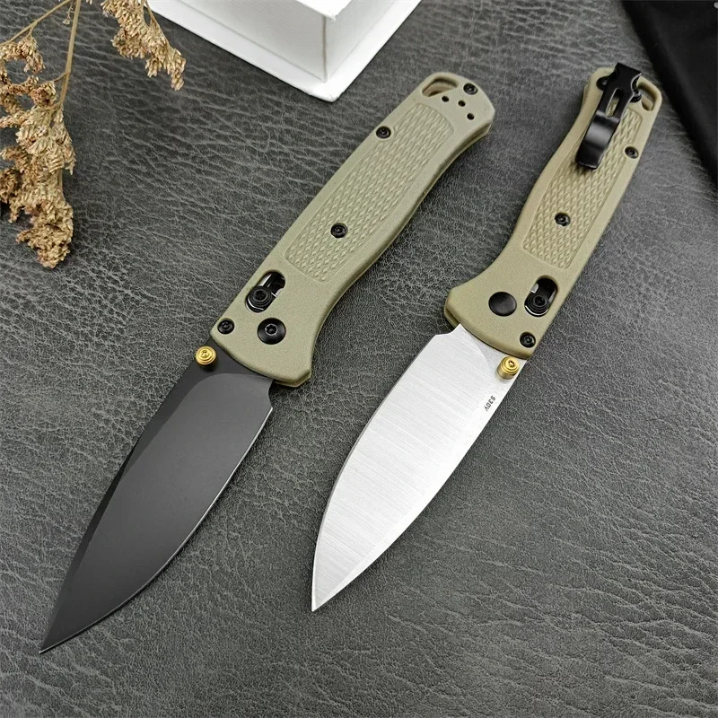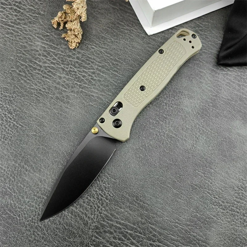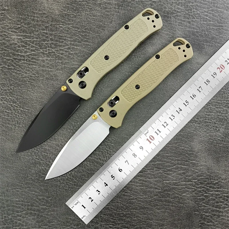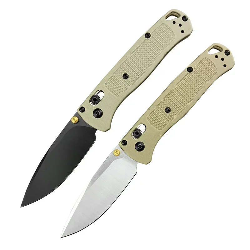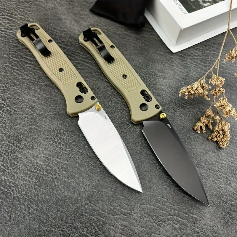 The BM 535 Folding EDC Pocket Knife features a durable 440C stainless steel blade known for its excellent edge retention and corrosion resistance. Its khaki nylon fiber handle offers a lightweight yet sturdy grip, ideal for outdoor, camping, and survival tasks. Designed for everyday carry, this high-quality utility knife combines reliability and practicality, making it an essential tool for professionals and enthusiasts who demand performance in the field.