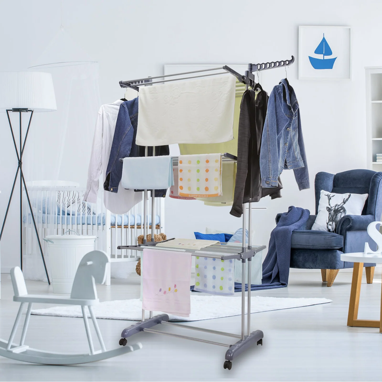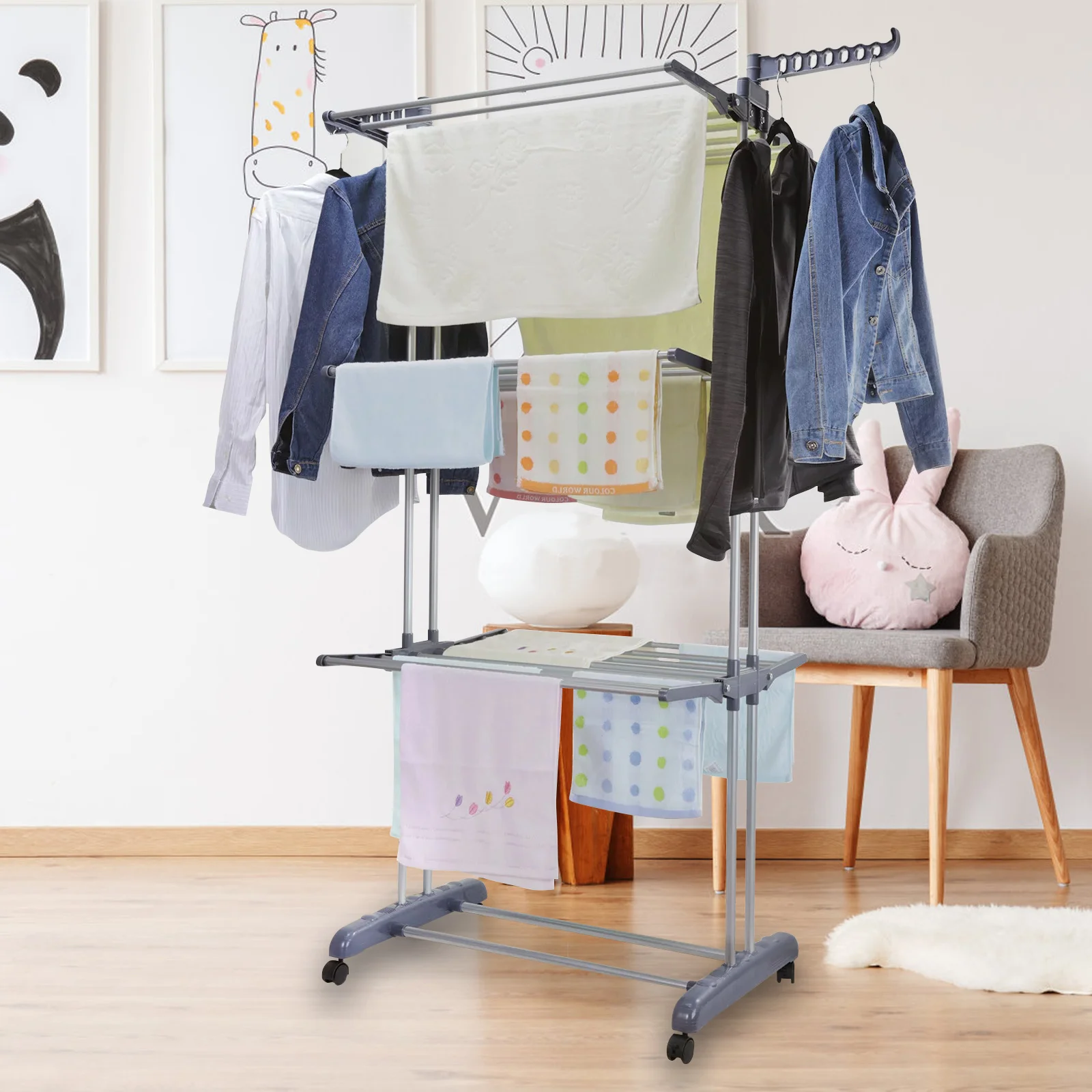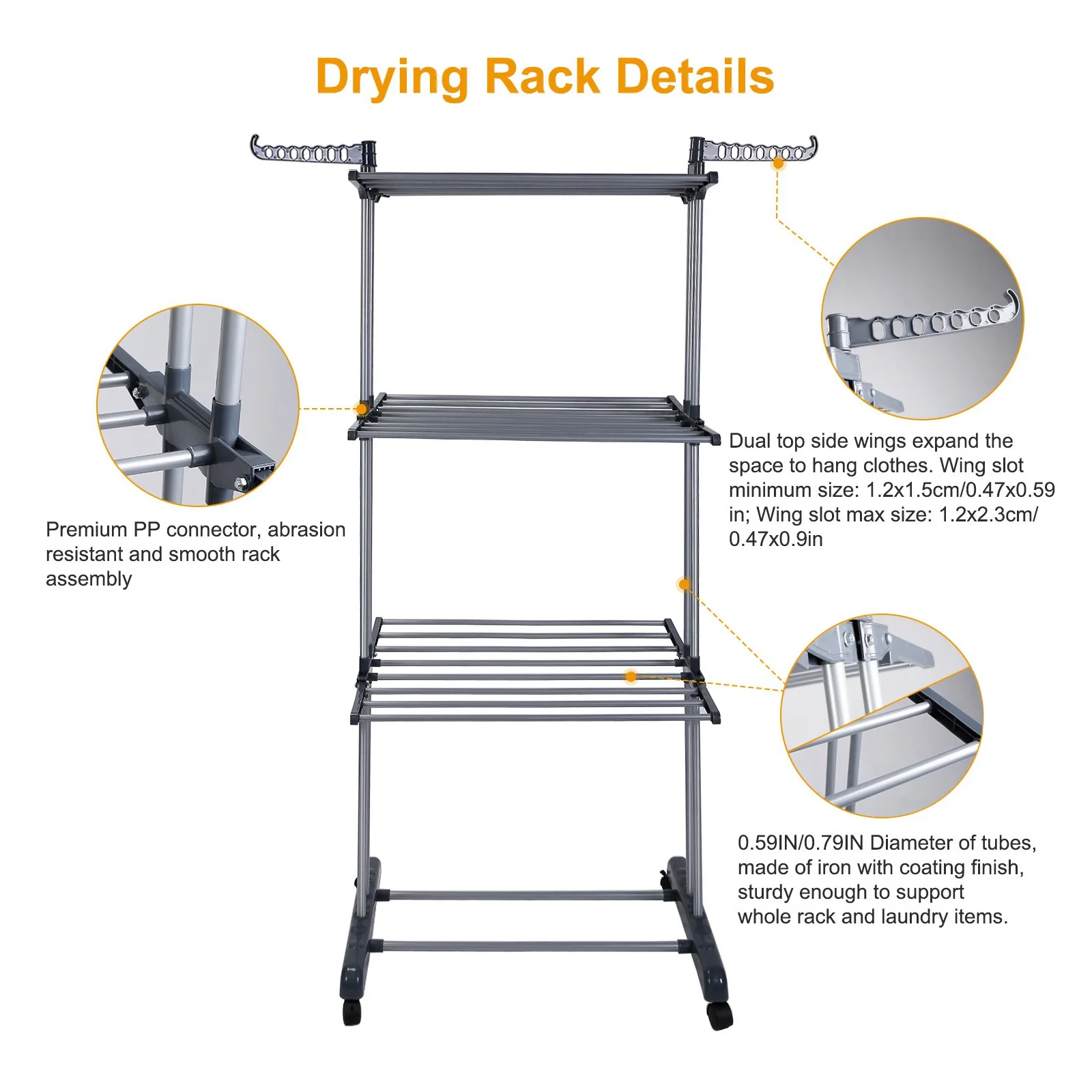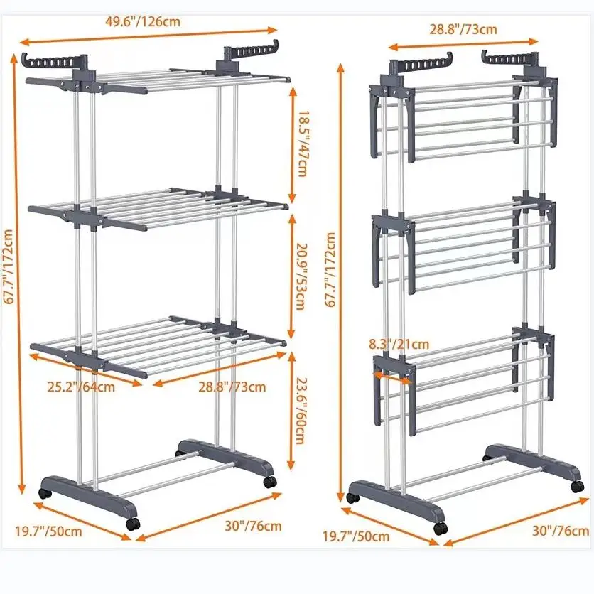 【High-quality & Durable】: The drying rack is made of high-hardness steel pipe and thick plastic with bold double columns on both sides, which is more stable than ordinary drying racks and has longer service life.