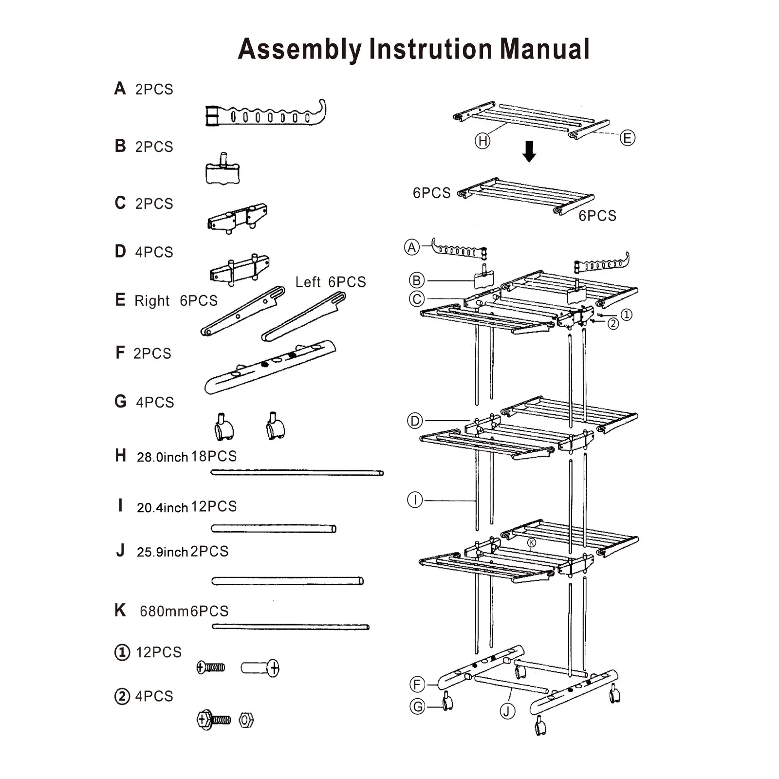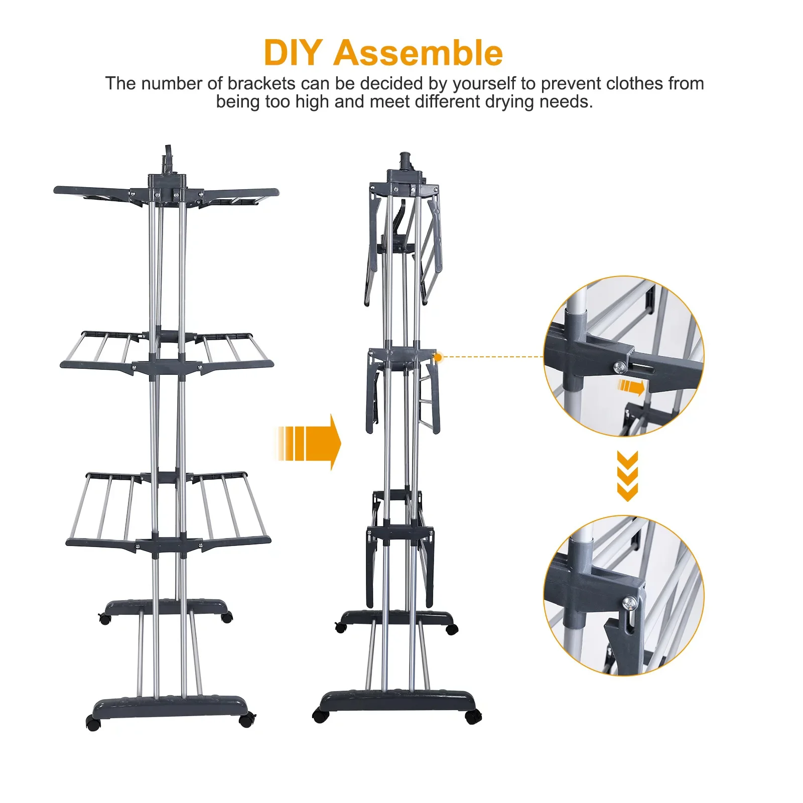 【Easy to Assemble】:The drying rack is lightweight and very easy to install. With detailed instructions in the box, it can be completed under 10 minutes.