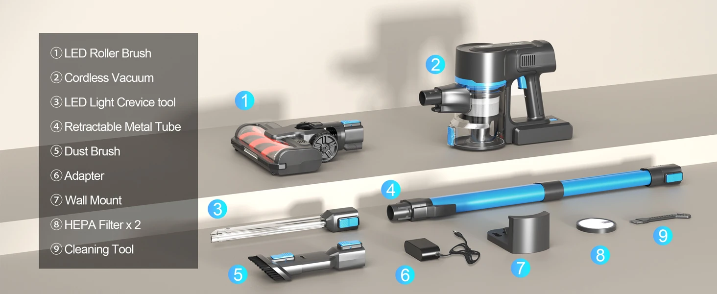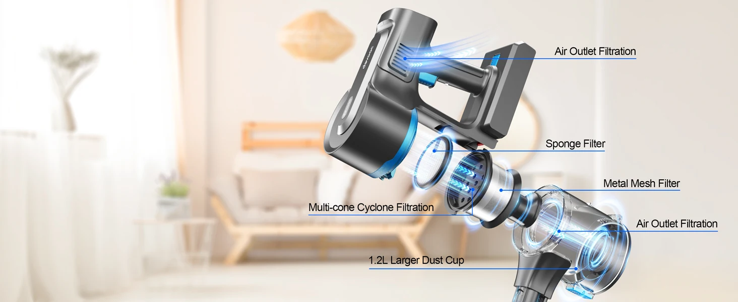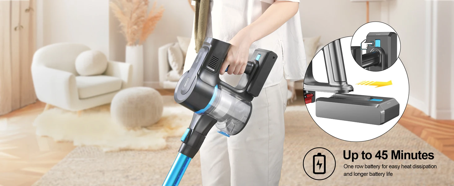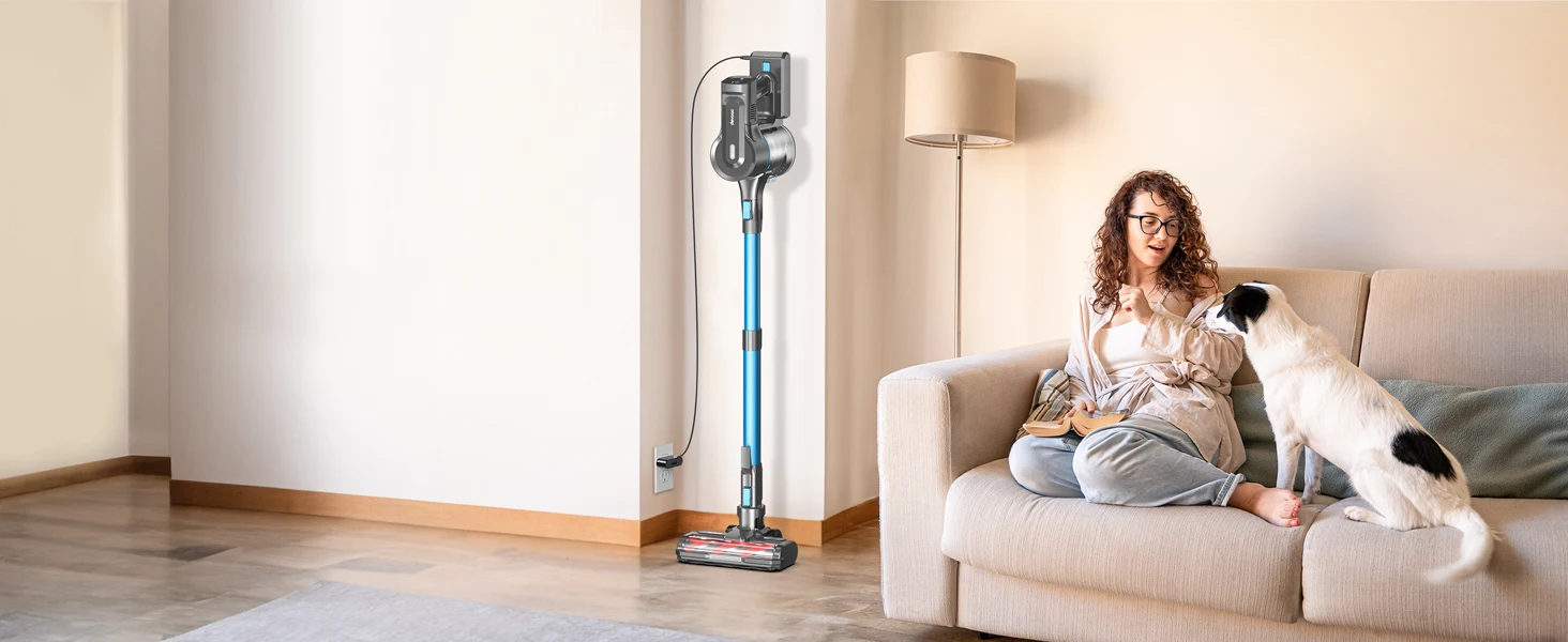 The DEVOAC S11 Cordless Vacuum Cleaner features a robust 350W brushless motor generating 30Kpa suction power, effectively capturing dirt, dust, and stubborn pet hair from various surfaces. Its lightweight stick design enhances portability and ease of use, allowing for extended cleaning sessions without strain. The cordless operation provides freedom of movement, making it ideal for quick cleanups and reaching difficult areas. Engineered for pet owners, this vacuum combines high-performance suction with practical design elements to deliver a thorough and efficient cleaning experience in any home environment.