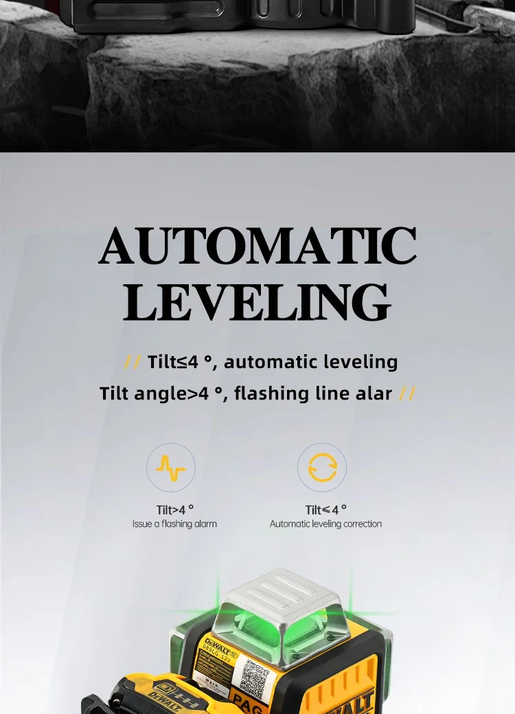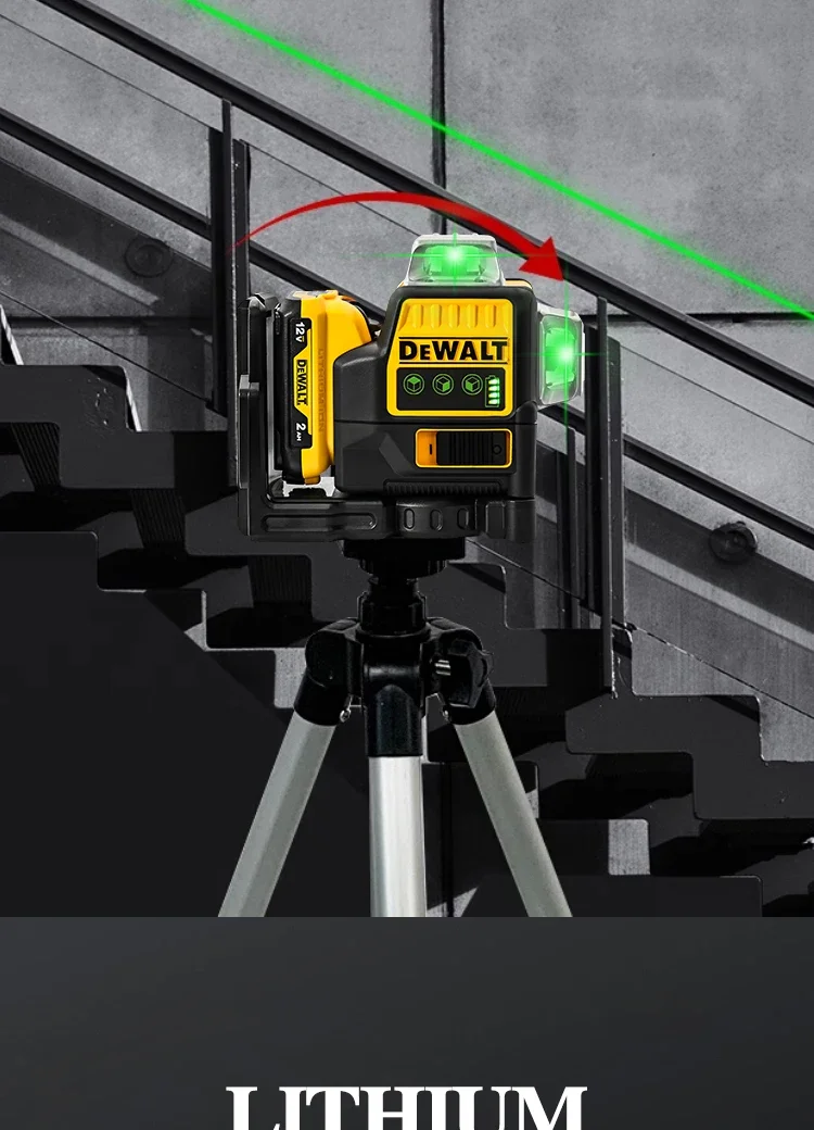 The DEWALT DW089LG 12V Laser Level delivers precise self-leveling with 12 bright green lines projected across three sides, offering full 360-degree coverage. Designed for expert use, it provides accurate horizontal and vertical cross lines, enhancing alignment and layout tasks. Its robust self-leveling mechanism ensures reliable performance on various job sites, making it an essential tool for professionals requiring efficient and precise leveling solutions.