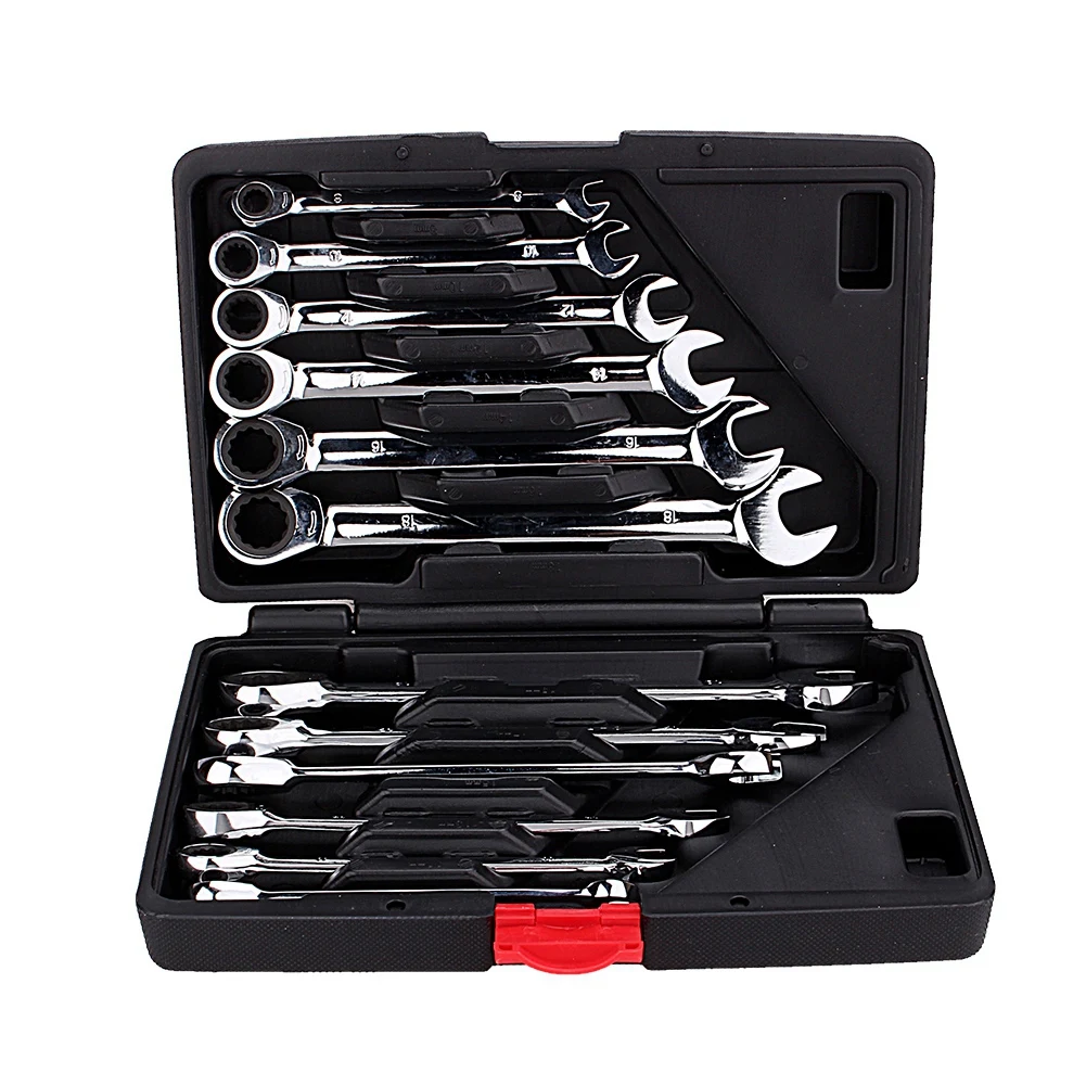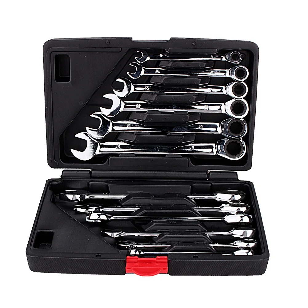 This comprehensive set of flexible combination spanners covers sizes from 8mm to 19mm, providing versatility for various mechanical and maintenance tasks. Featuring ratchet functionality, these fixed spanners enable efficient tightening and loosening without repositioning, enhancing productivity. Crafted for durability and precision, this hand tool kit is ideal for professionals seeking reliable hardware tools that combine flexibility with robust performance.