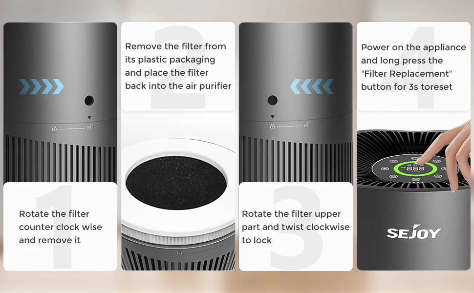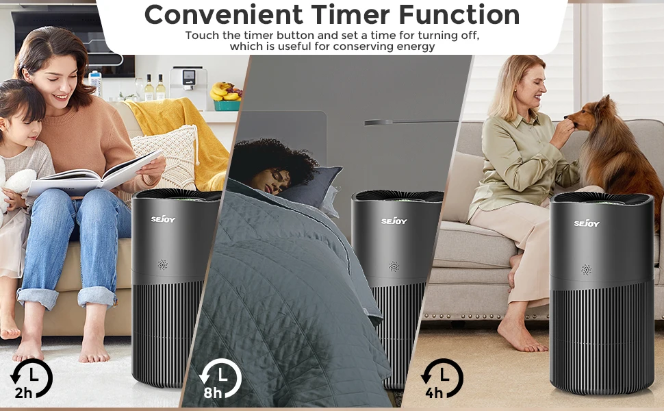 Undisturbed Operation: Display light can be turned off to enjoy a perfect night of sleep without the effect of light. A timer for 2/4/6/8 hours and filter life time indicator for your convenience