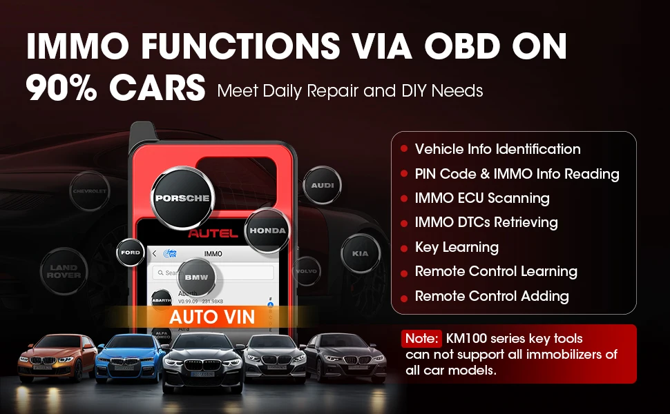 Industry-Leading coverage of IMMO learning via OBD for more than 90% of models, including for BMW, for Volkswagen, for Toyota, for Honda, for General Motors, etc.