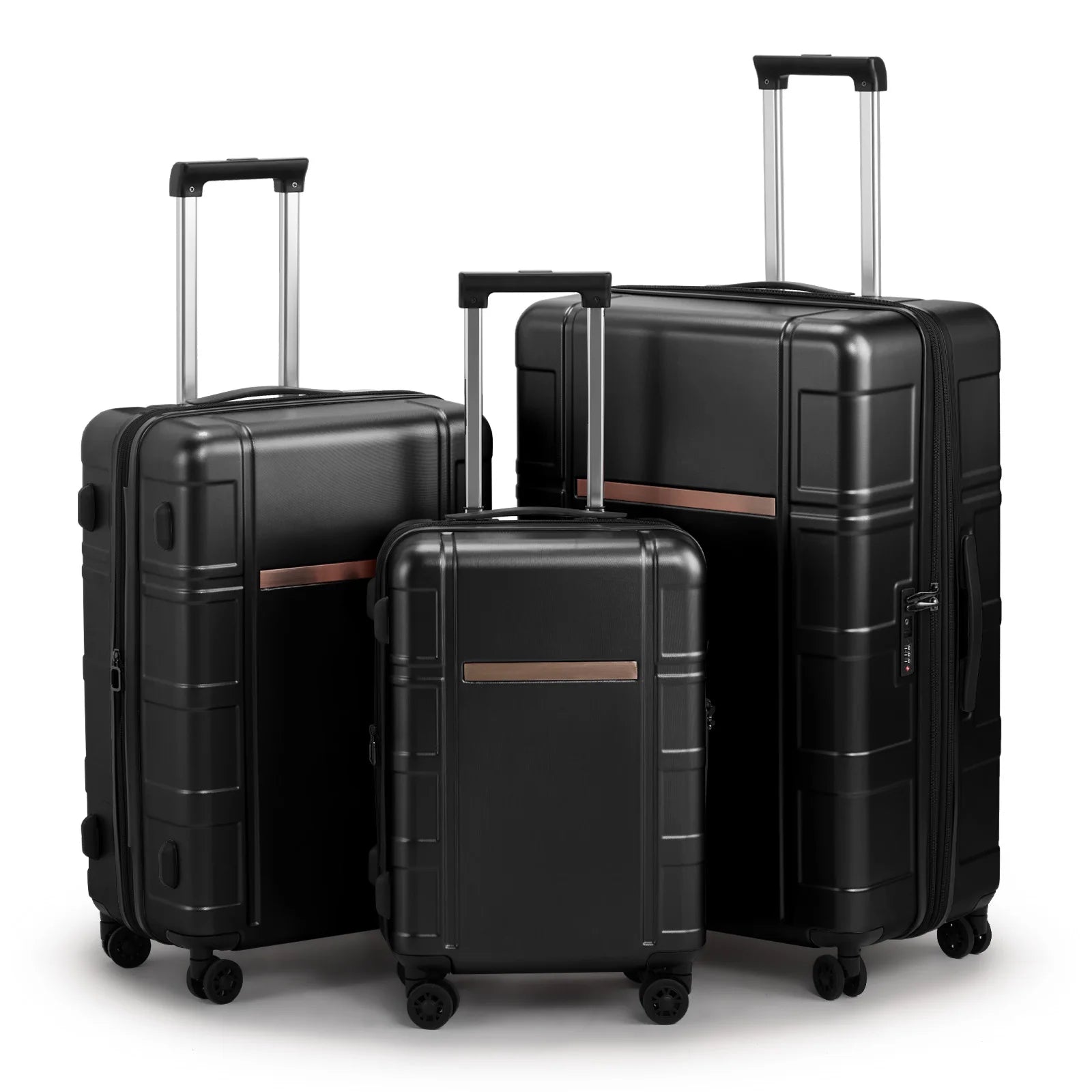 This 3-piece luggage set combines durable PC+ABS construction with expandable capacity, offering versatile packing options for all your travel needs. Equipped with TSA-approved locks and smooth spinner wheels, it ensures security and effortless maneuverability. Ideal for frequent travelers seeking reliable, lightweight, and secure luggage solutions.