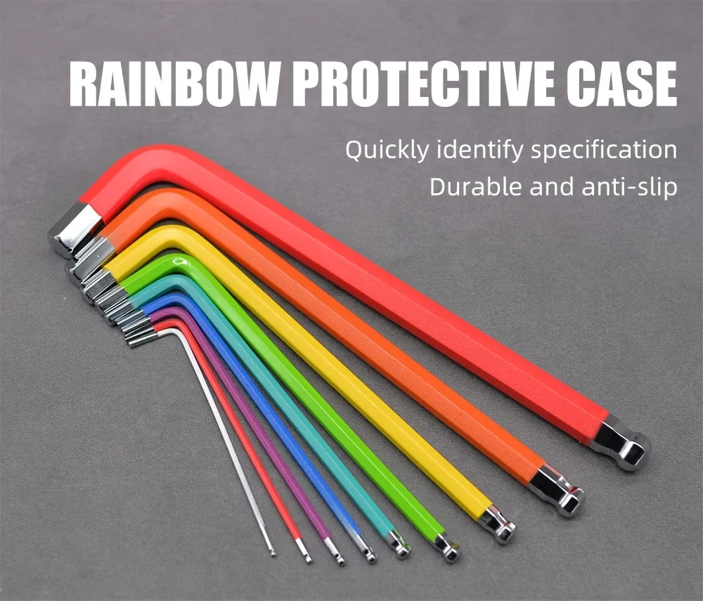 The ThinkRider 9 Function Color Bike Repair Tool set offers a comprehensive range of L-wrenches in sizes 1.5, 2, 2.5, 3, 4, 5, 6, 8, and 10mm. Designed for precise adjustments and repairs, these inner hexagon tools provide durability and ease of use for professional bike maintenance. Its color-coded design ensures quick identification of each wrench, streamlining your repair process and enhancing efficiency. Ideal for cyclists seeking reliable, expert-grade tools for on-the-go or workshop use.