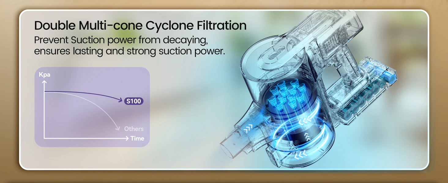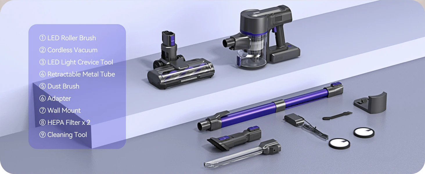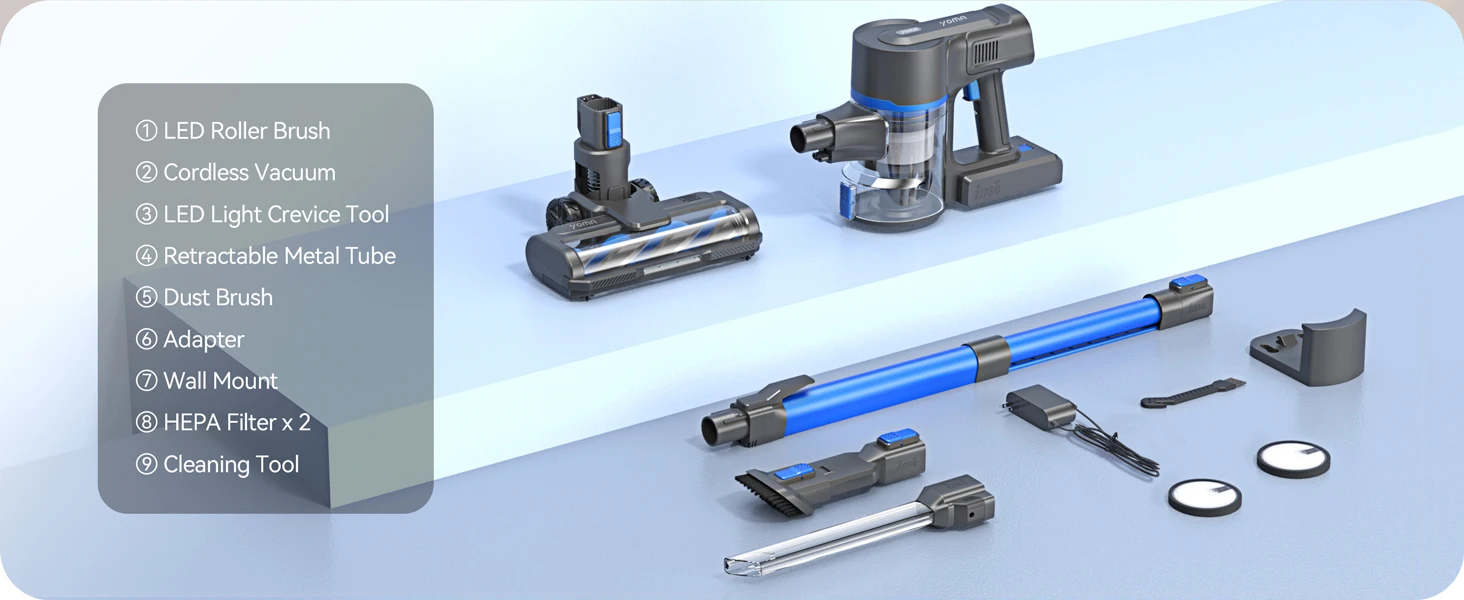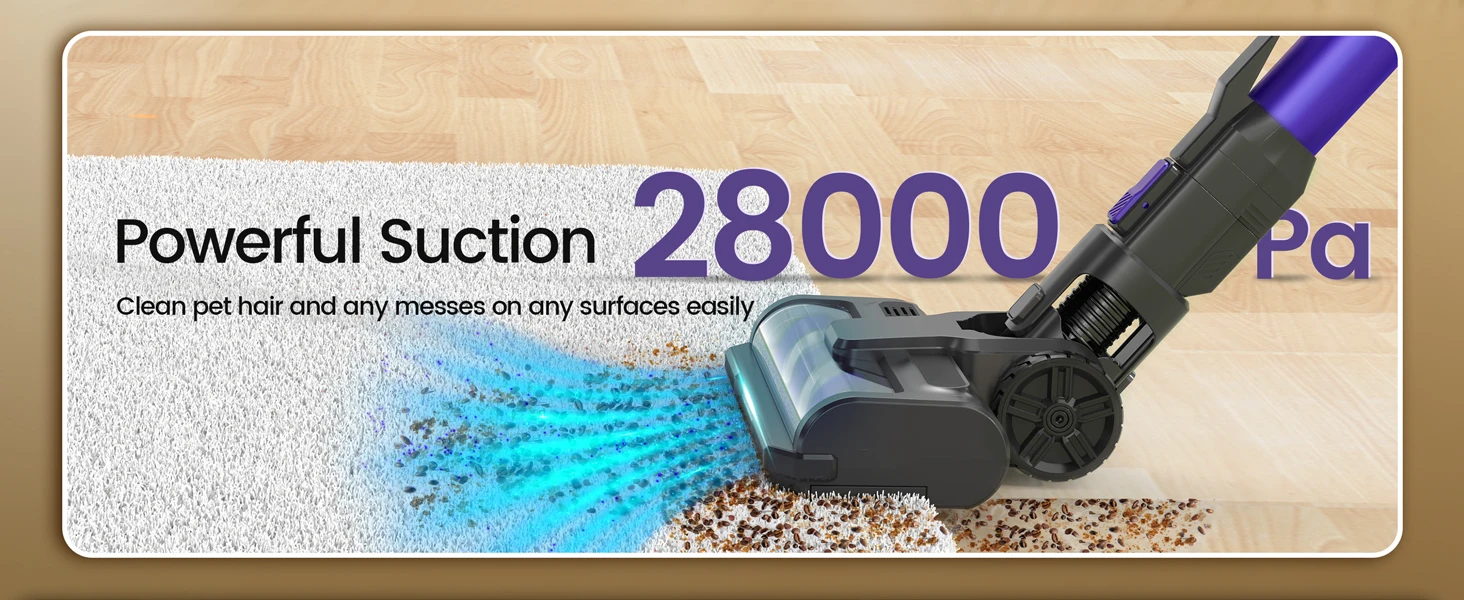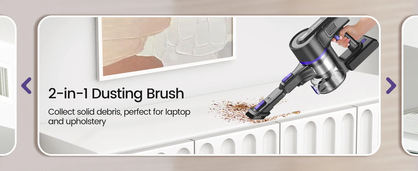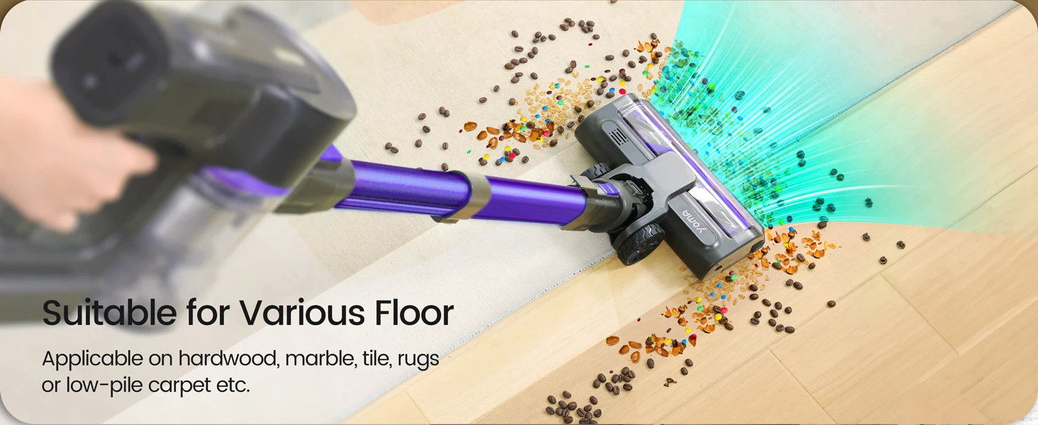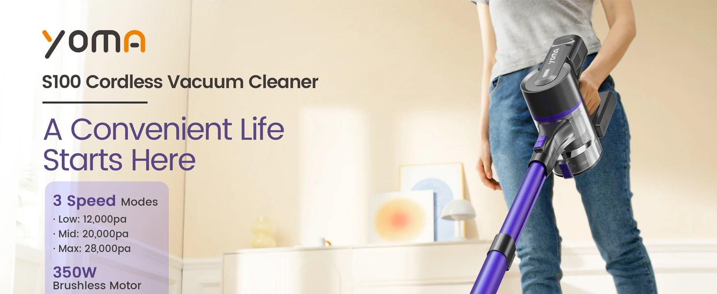 The Yoma S100 cordless vacuum delivers powerful 28000Pa suction with a 350W motor, ensuring thorough cleaning on hardwood floors, pet hair, and car interiors. Its versatile 9-in-1 design adapts to multiple surfaces and tight spaces, while a runtime of up to 45 minutes provides extended cleaning sessions without interruption. Lightweight and cordless, it offers expert-level performance and convenience for maintaining a spotless home environment.